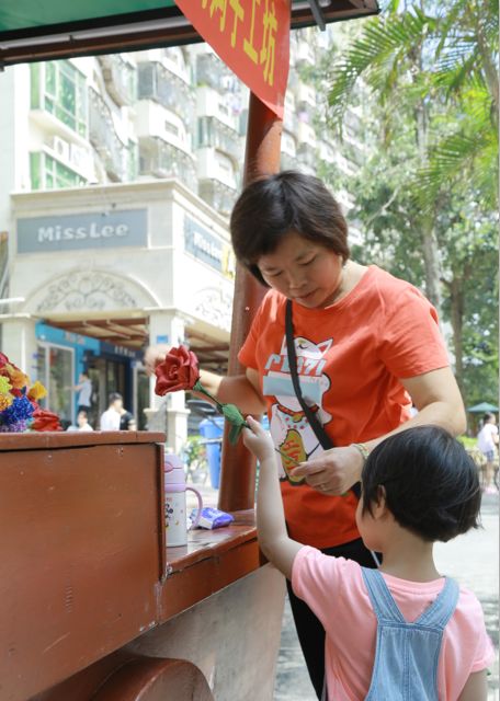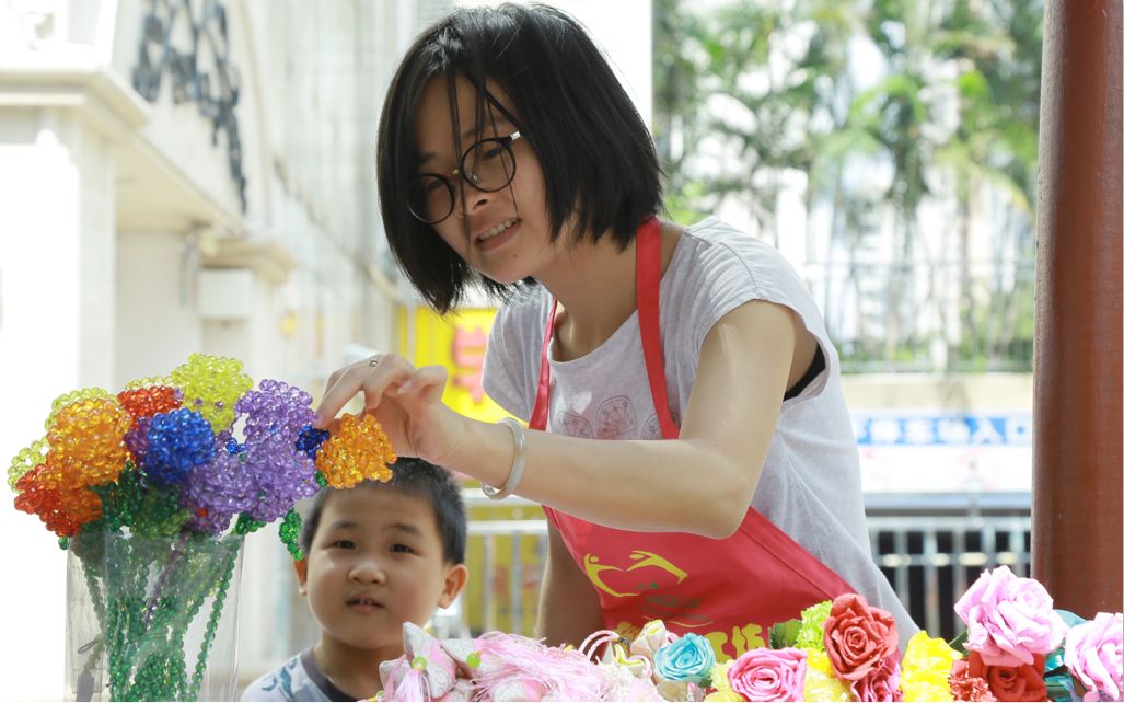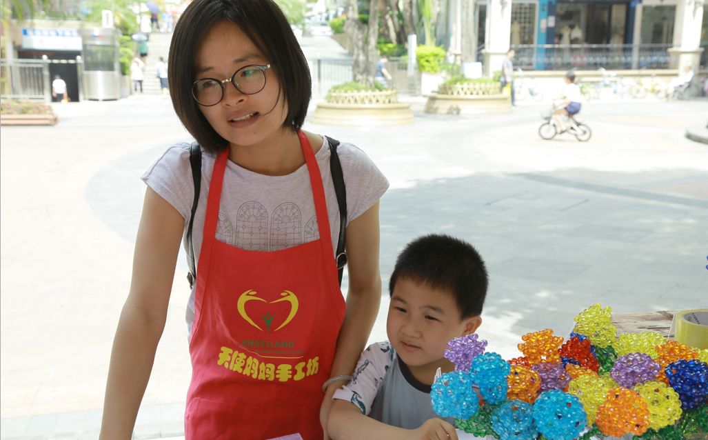 5月13日是母亲节。由西丽街道党工委、深圳市关爱行动公益基金会·西丽·社区基金、花样盛年慈善基金会联合支持,由深圳市天使家园特殊儿童关爱中心承办的“天使妈妈手工坊义卖活动”在西丽街道366大街举行。
